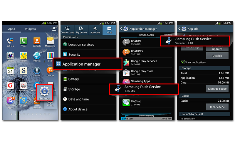 You can check the installation of the app in 'Settings > Application manager' after downloading the Samsung push service.